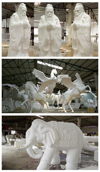 泡沫雕塑造型價格不但低廉,材質更有可塑性,可以制成各種各樣的造型,快捷的造型工序,使它能在短時間內塑造出一個個生動活潑,或卡通或寫實的鮮明形象。而且我們采用專門定制的泡沫板制作雕塑,具有很強的防火性,非常適合室內外短時間的擺放裝飾,不論安裝還是拆卸都非常方便,不會污染環境,如果經過表面處理也可以長期擺放。泡沫雕塑產品具有重量輕,非常適合懸掛裝飾布景,合理的價格便可營造出一幕幕繽紛的場景,在節慶氛圍的渲染上起到畫龍點睛的作用,每每使客人紛紛駐足,流連忘返,很大程度的聚集了人氣,泡沫雕塑的圣誕老人;白雪公主;財神;生肖等特色形象點綴街頭;廣場和大堂.在中西方重大節慶中扮演著不可或缺的角色。以至重大節慶,哪個商家若不做點裝飾一下,便頓感黯然失色!泡沫雕塑相對玻璃鋼成本更低,因為不需要開模具。 經過多年的發展,泡沫雕塑已從原來單一的節慶裝飾造型跨入多元發展.以其可操做性強,便捷的特點,逐步在影視道具;展覽展示;廣告;模型等領域展現出獨特魅力。泡沫雕塑產品具有重量輕、價格低,制作周期短等優點。廣泛應用于展覽場所、戶外廣告、商業空間布置、婚慶布置、商場大型購物中心、文化廣場、節慶裝飾、品牌推廣視覺形象、圣誕場所布景、娛樂場所布景、影視模型道具,庭院景觀以及室內外浮雕壁畫等,也可以根據要求定制大型工藝品,主題公園餐廳建筑,小區景觀以及原有建筑物的裝飾。