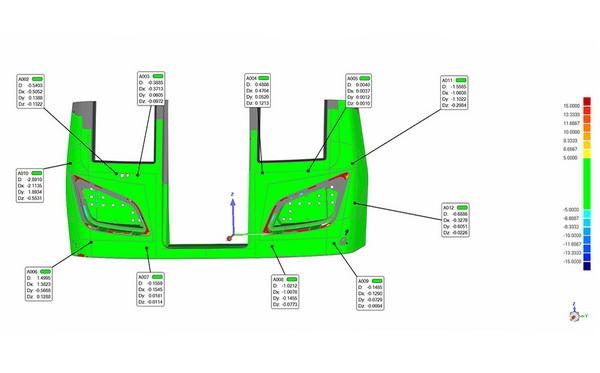 快速準確地獲取了汽車變速箱殼體的3D偏差數據,準確高效地找到變速箱殼體的誤差,根本上保證了變速箱殼體的生產質量安全。同時大大簡化汽車制造業零部件的生產質量把控難度,提高檢測的效率,獲得客戶的認可和好評;另一方面,獲取高精度的三維數據讓只有合格的變速箱殼體才能裝配進入汽車,大大保證汽車駕駛工作環境的安全性,為駕駛者保駕護航!