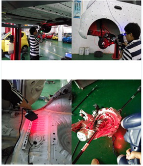 以全局攝影測量系統獲得的標記點數據為整體基準,輻射到個別掃描區域,掃描汽車整車以及部分拆解后的零件,獲取其三維數據。